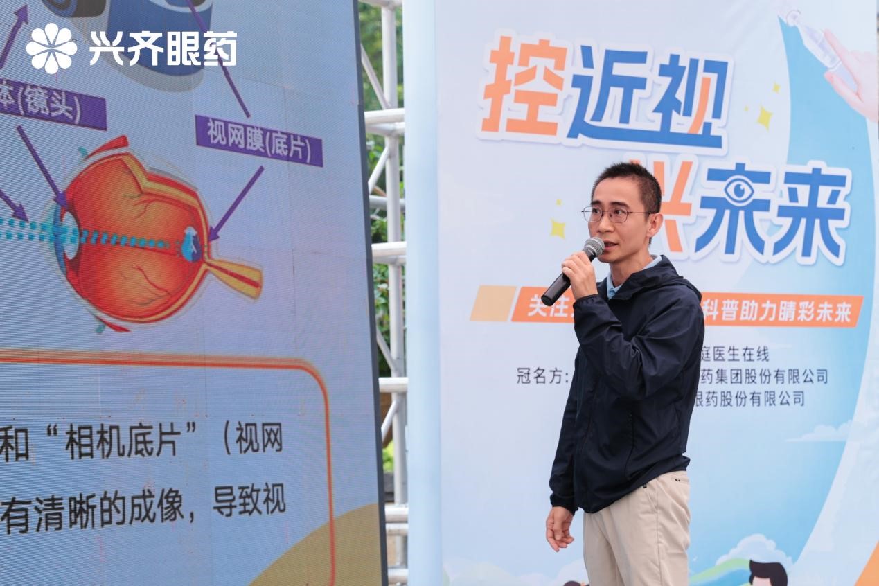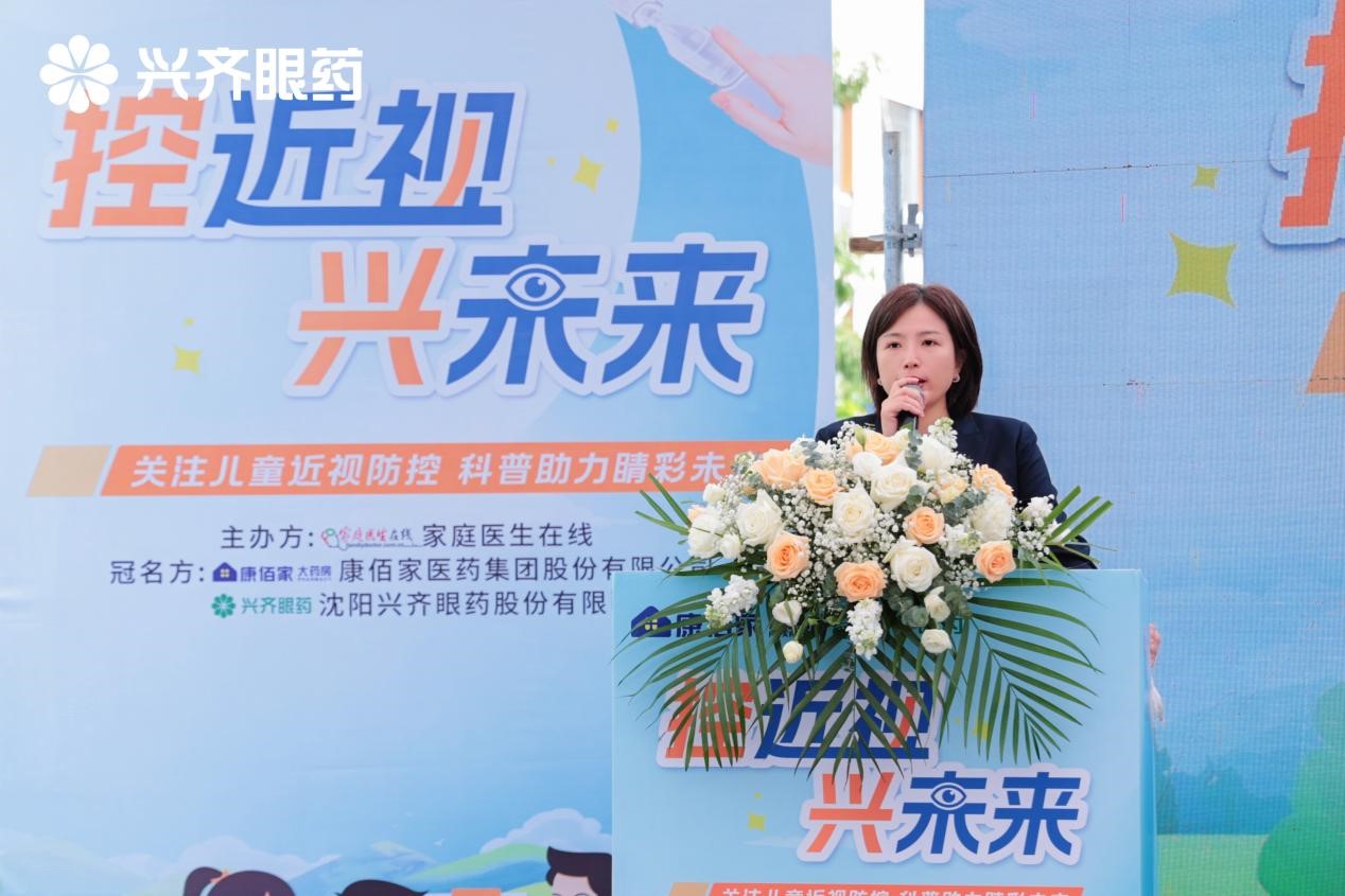 沈阳兴齐眼药股份有限公司大区经理胥明怀在致辞中表示,兴齐眼药始终以"经营健康,缔造光明"为使命,专注眼科领域创新研发。作为【控近视 兴未来】公益行动的发起方,该项目已走进全国十余个城市,通过智能检测、专家讲座等形式,惠及了成千上万个关注儿童青少年眼健康的家庭。
